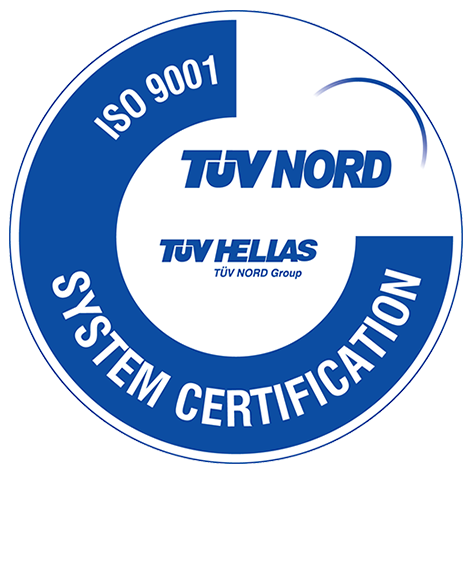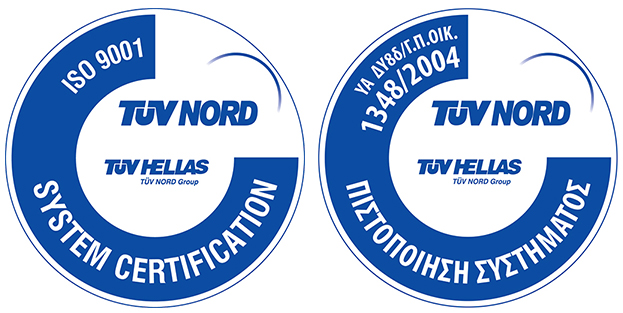 Η Εταιρεία μας συμμορφώνεται με το πρότυπο ISO9001 και την Υ.Α. 1348/2004. Φορέας πιστοποίησης TUV HELLAS.